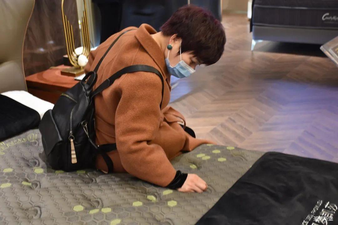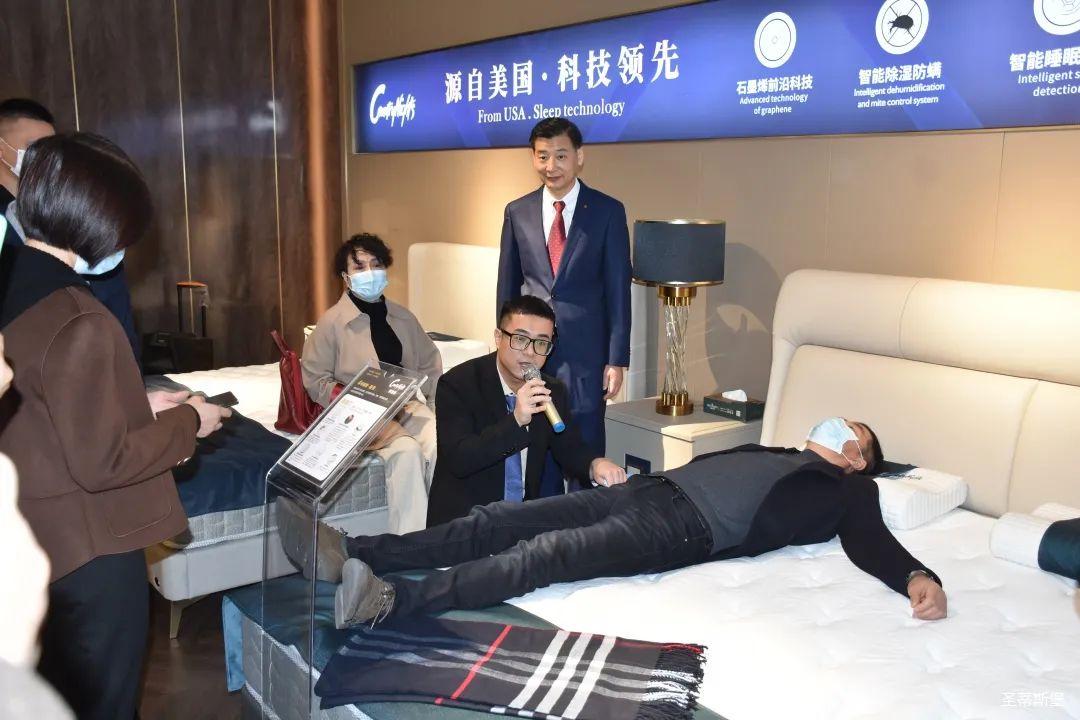 嘉賓們紛紛現(xiàn)場體驗(yàn)夢(mèng)凱莎床墊的科技睡感。