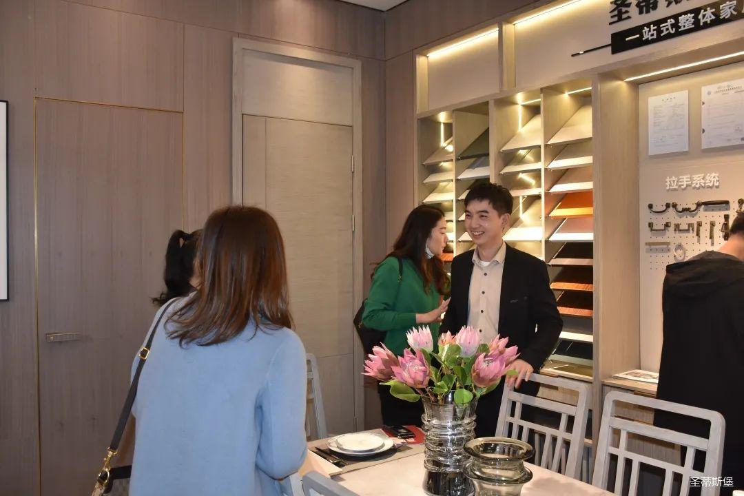 展廳內(nèi),專業(yè)的導(dǎo)師為嘉賓們?cè)敿?xì)介紹了產(chǎn)品工藝特點(diǎn)、整體造型特色、裝飾元素以及色彩搭配等;還有全屋定制、固裝、營銷等部門高管,與經(jīng)銷商熱情的交流溝通,并為大家講述了圣蒂斯堡的原創(chuàng)設(shè)計(jì)理念。“洛斯”主打的差異化輕奢,更是贏得了在場經(jīng)銷商家人的高度贊譽(yù);圣蒂斯堡用實(shí)際行動(dòng)證明了在家居界不可比擬的產(chǎn)品優(yōu)勢和實(shí)力。