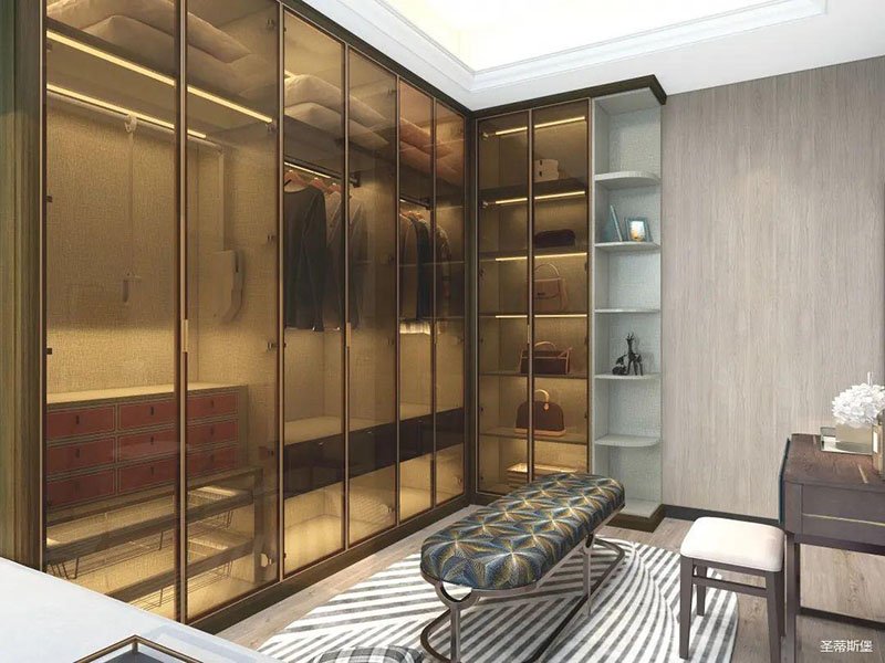 衣帽間開(kāi)放式置頂設(shè)計(jì),在追求簡(jiǎn)單到極致的基礎(chǔ)上,給人感官一種簡(jiǎn)約整潔的整體感受。打破常規(guī)的空間儲(chǔ)藏方式,脫離一切浮華與不實(shí)用,僅用最簡(jiǎn)單的線(xiàn)條反映出主人優(yōu)雅的高品味。