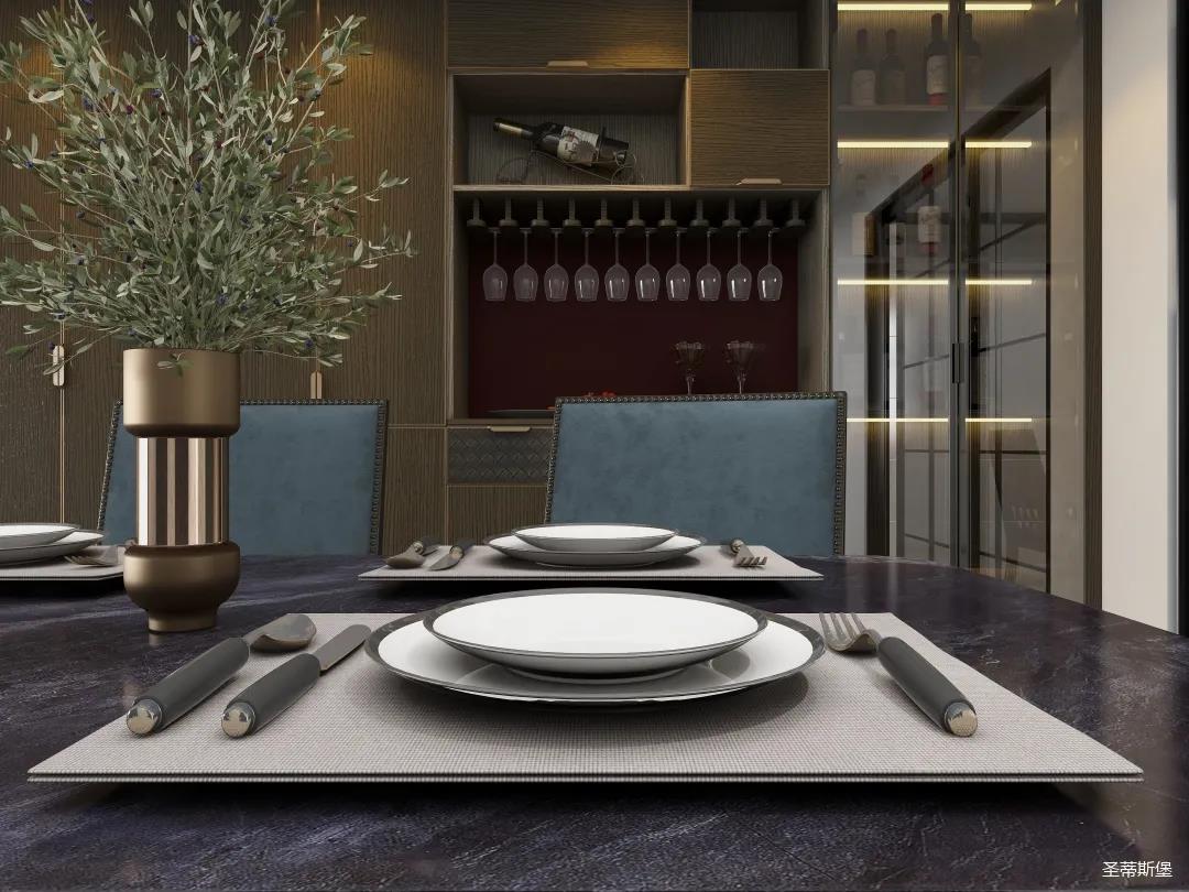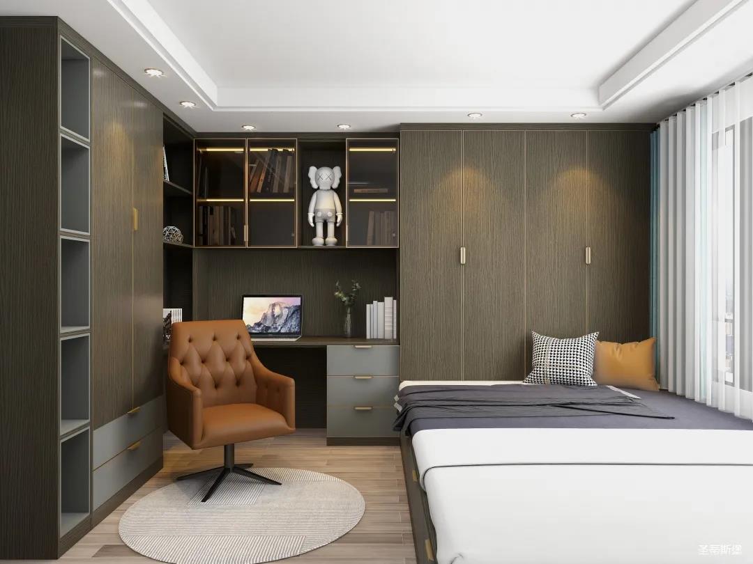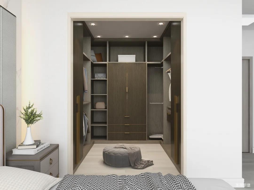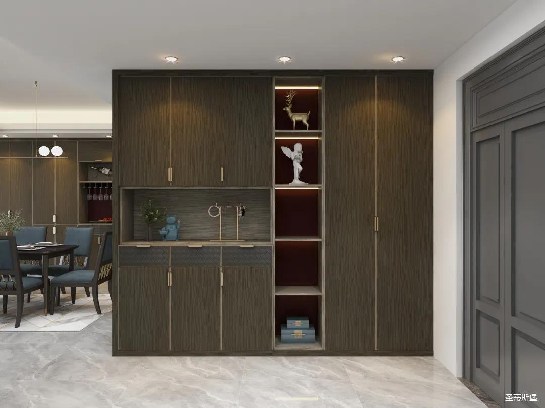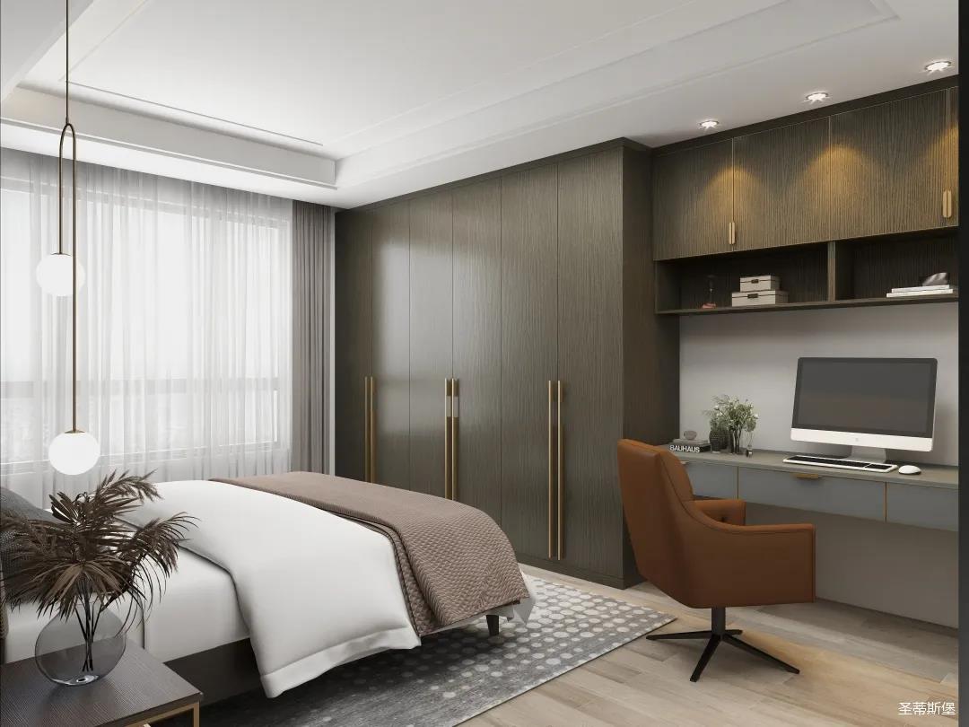 材質(zhì)的交替與光影的變換,具有濃濃的現(xiàn)代簡(jiǎn)奢色彩。獨(dú)一無二的英倫爵士灰定制柜,由延邊鑲嵌的香檳金拉絲金屬分割,線條流暢且奢華,不僅代表著時(shí)尚,也崇尚了實(shí)木韻味。設(shè)計(jì)師將現(xiàn)代、實(shí)用、精致的藝術(shù)設(shè)計(jì)風(fēng)格應(yīng)用其中,更是精致生活方式的藝術(shù)演繹。在平靜的空間中表現(xiàn)出獨(dú)特的藝術(shù)骨感,滿足我們對(duì)精致生活的精神追求。