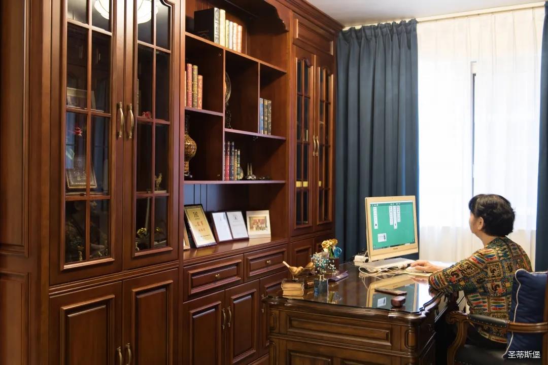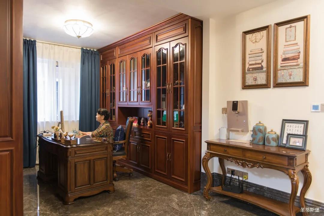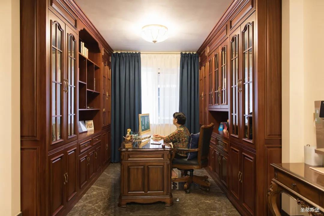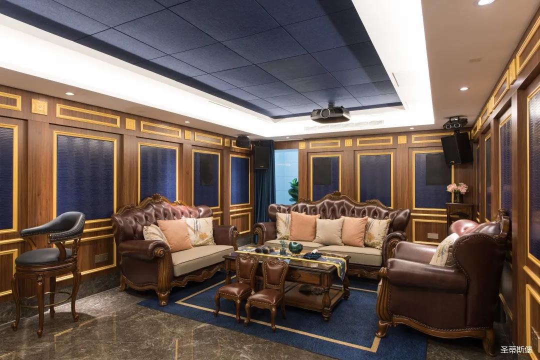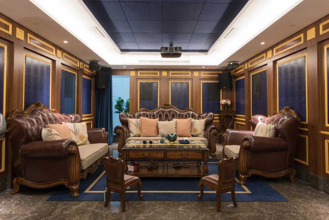 業(yè)主夫婦非常熱情好客,平時工作之余也會在家里邀三兩好友一起觀影,觀影室的整體設(shè)計容納著濃烈的古色古香,長方形圖案排列搭配復(fù)古的家具與配飾,精細(xì)的雕花藝術(shù),于細(xì)節(jié)之間演繹著精致生活。不管時光如何輾轉(zhuǎn)變換,家的定義從不曾改變,它撫慰著我們的心靈,承載著我們的喜樂,從細(xì)膩的質(zhì)感中感知家的點滴變化,才是對生活最真實的寫照。