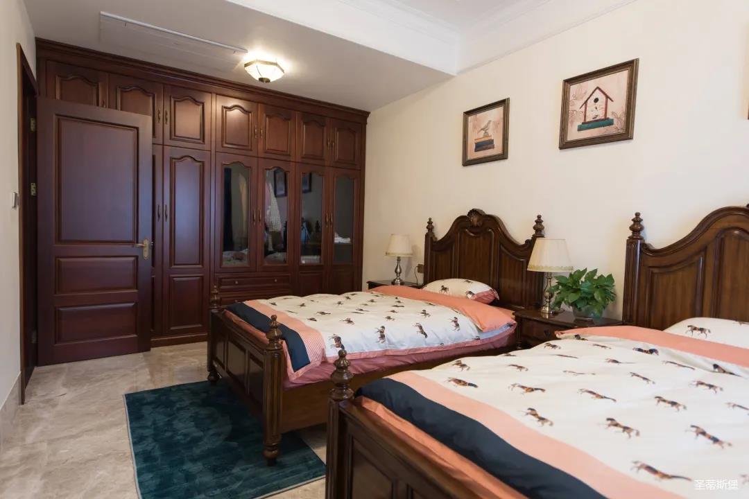 結(jié)合業(yè)主的需求,精簡打造客房,秉承了古典主義和諧對稱的原則。在中性復(fù)古的色彩中,調(diào)和出溫馨懷舊的味道。家具精雕細(xì)琢的品質(zhì),令空間沉浸在古典的氛圍里,讓居家生活親切而有靈魂!