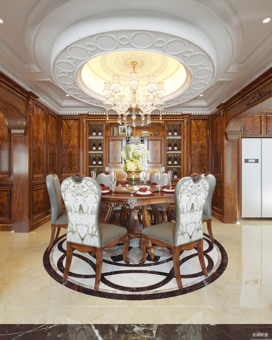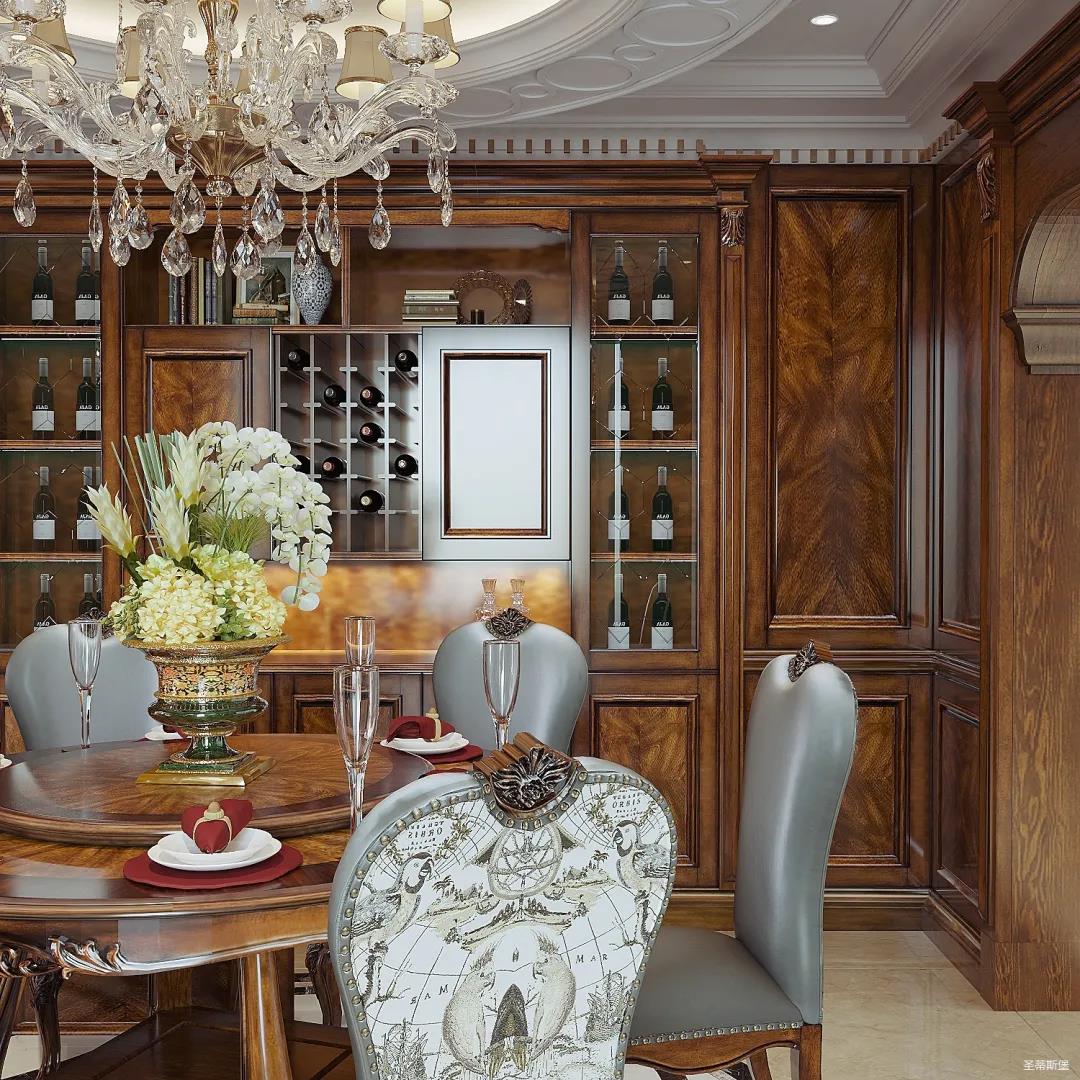 女業(yè)主是留美歸來(lái),非常喜歡美式用餐氛圍,設(shè)計(jì)師以懷舊雅致作為室內(nèi)基調(diào),整體定制柜與護(hù)墻,都透著美式的自然懷舊,即使褪去家具軟裝,僅存留硬體結(jié)構(gòu),仍透散著優(yōu)雅純凈的美式韻味。
