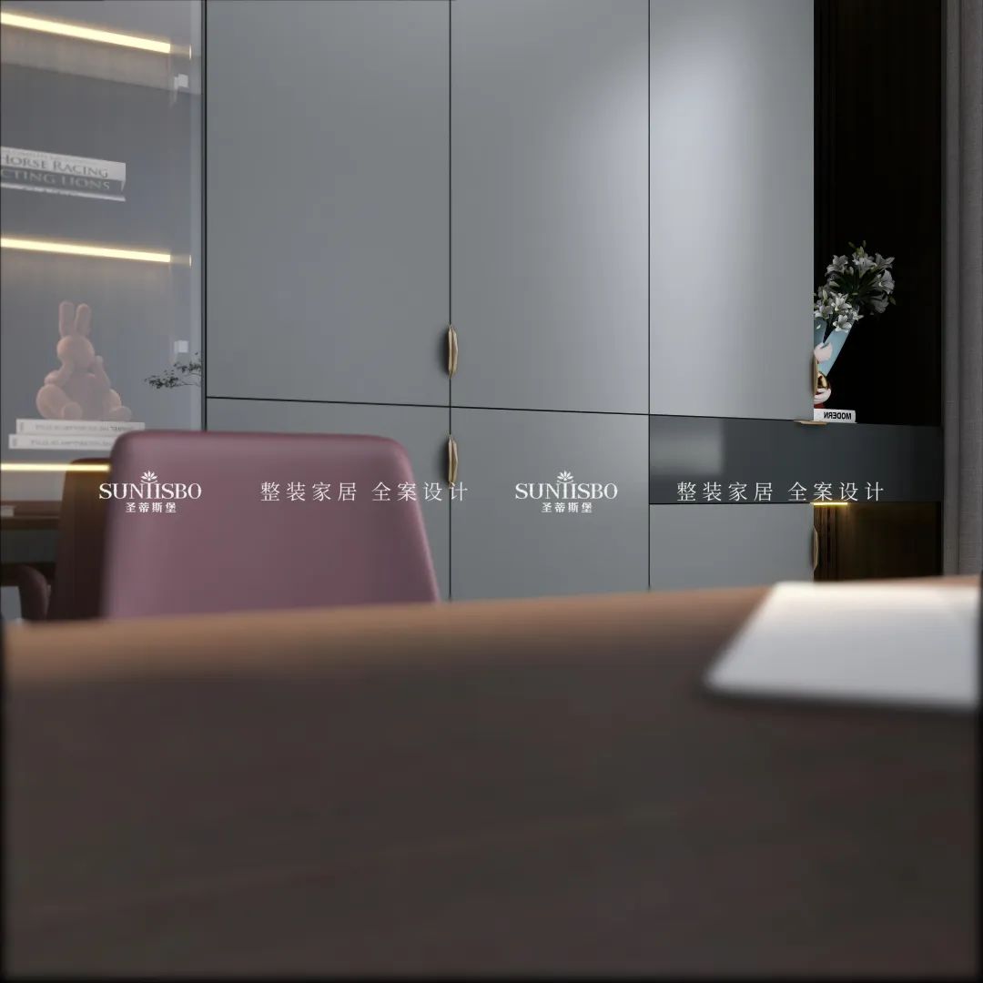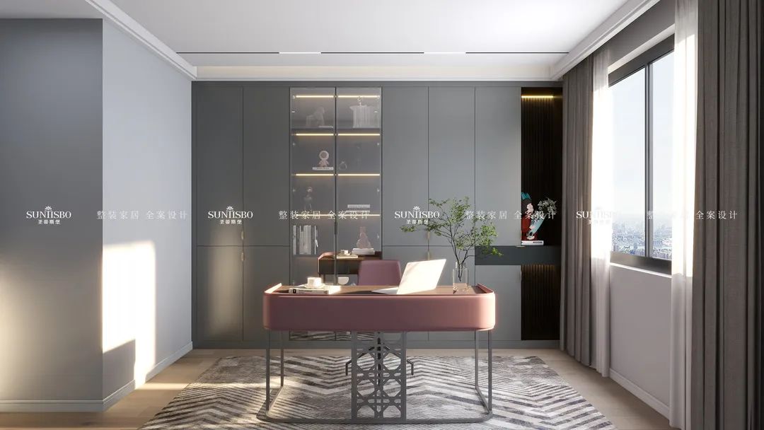 啞灰的定制書柜,冷靜理性,帶來思緒上井然有序的細(xì)密邏輯。天然原生的光感,讓視覺達(dá)到完美平衡。書房特意配上多裂綠植,讓現(xiàn)代簡(jiǎn)約與傳統(tǒng)文化結(jié)合,萌發(fā)出別出心裁的設(shè)計(jì),展現(xiàn)業(yè)主對(duì)傳統(tǒng)文化情結(jié)的喜愛。